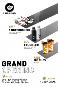 After a long wait, are you ready for the grand opening adventure at THREE O’CLOCK Tân Phú? Let’s meet up this weekend at 202 – 204 Trương Vĩnh Ký, Tân Sơn Nhì Ward, Tân Phú District to celebrate our housewarming party with tons of exclusive offers for our beloved 3’ers...