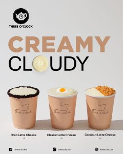 Inspired by drifting clouds in the sky, the Creamy Cloudy Collection is THREE O’CLOCK’s gentle invitation to coffee lovers—inviting you on a dreamy journey into the world of silky, cloud-like cheese cream. • Oreo Latte Cheese – Crushed Oreo cookies melt into a rich, velvety cheese foam, perfectly balanced with...