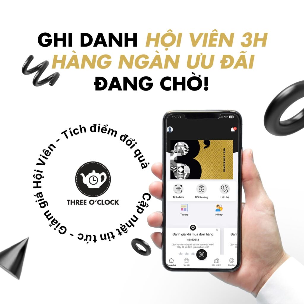 Chương trình Hội Viên 3H (THREE O’CLOCK Membership) dành cho mọi khách hàng đến sử dụng sản phẩm/dịch vụ tại THREE O’CLOCK. Với những chính sách ưu đãi hấp dẫn, các chương trình tri ân đặc biệt hàng năm, gia nhập Hội Viên 3H, bạn sẽ có cơ hội trải nghiệm những quyền lợi tốt nhất khi đi cà phê.