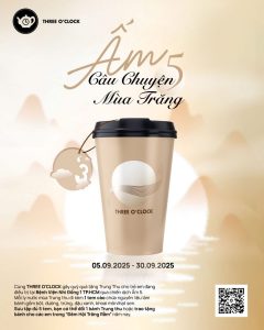 Trung thu này, cùng THREE O’CLOCK trở về miền tuổi thơ bằng sự kiện gom những mảnh trăng diệu kỳ để đổi lấy chiếc bánh Trung Thu thơm ngọt, đong đầy hương vị đoàn viên. Từ ngày 05.09 – 30.09.2025, mỗi ly nước mùa trăng sẽ tặng kèm 01 tem...